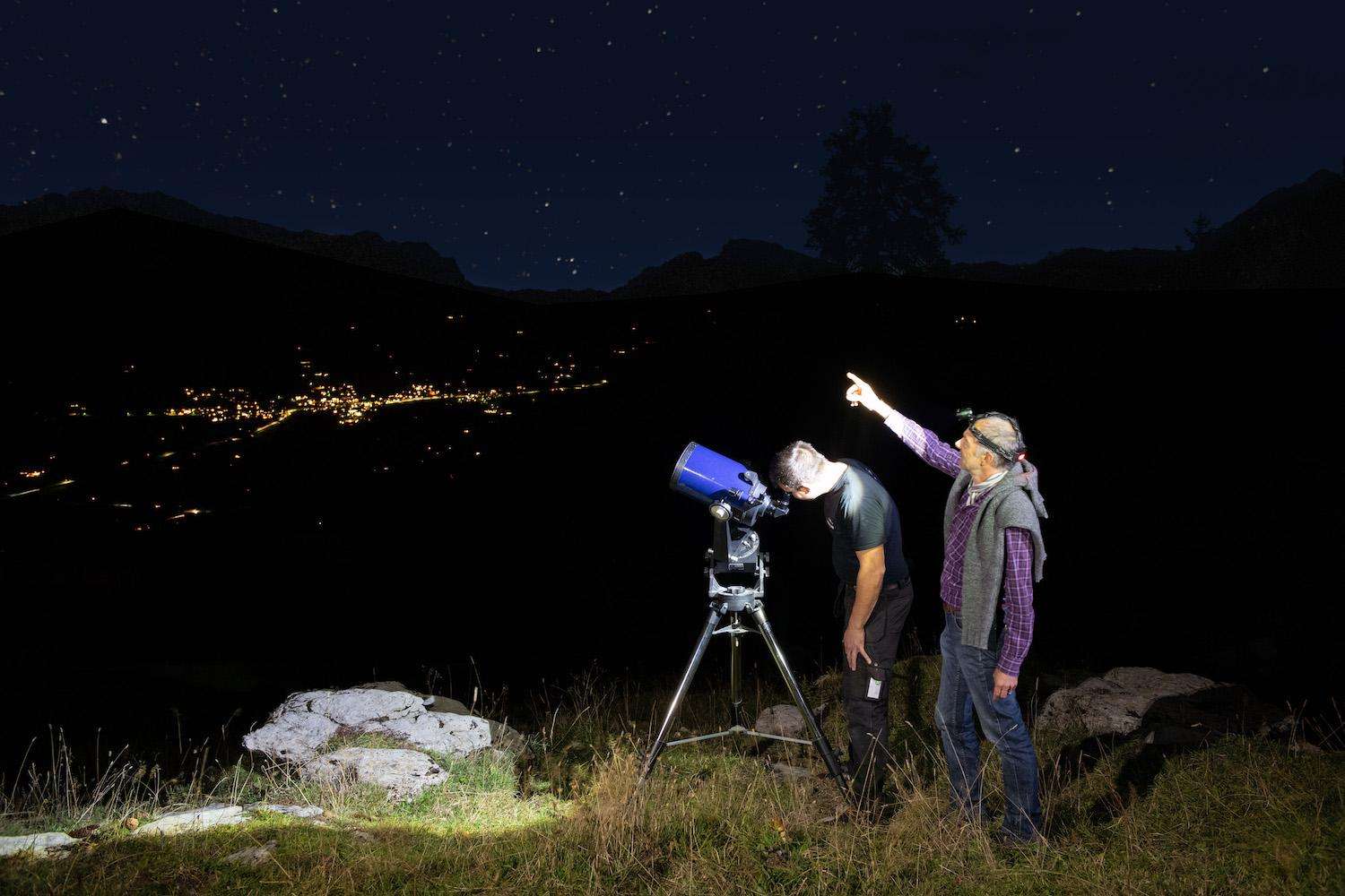 Sternenwanderung mit Teleskop Das Walenseetal eignet sich wegen wenig Fremdlichteinwirkung hervorragend für Sternenwanderungen.