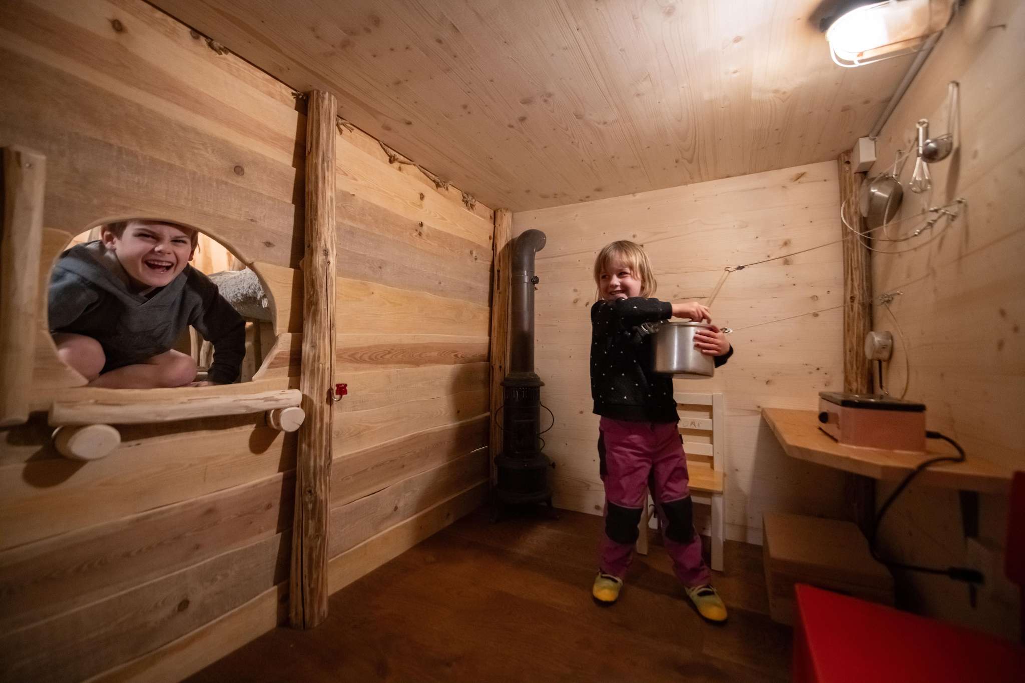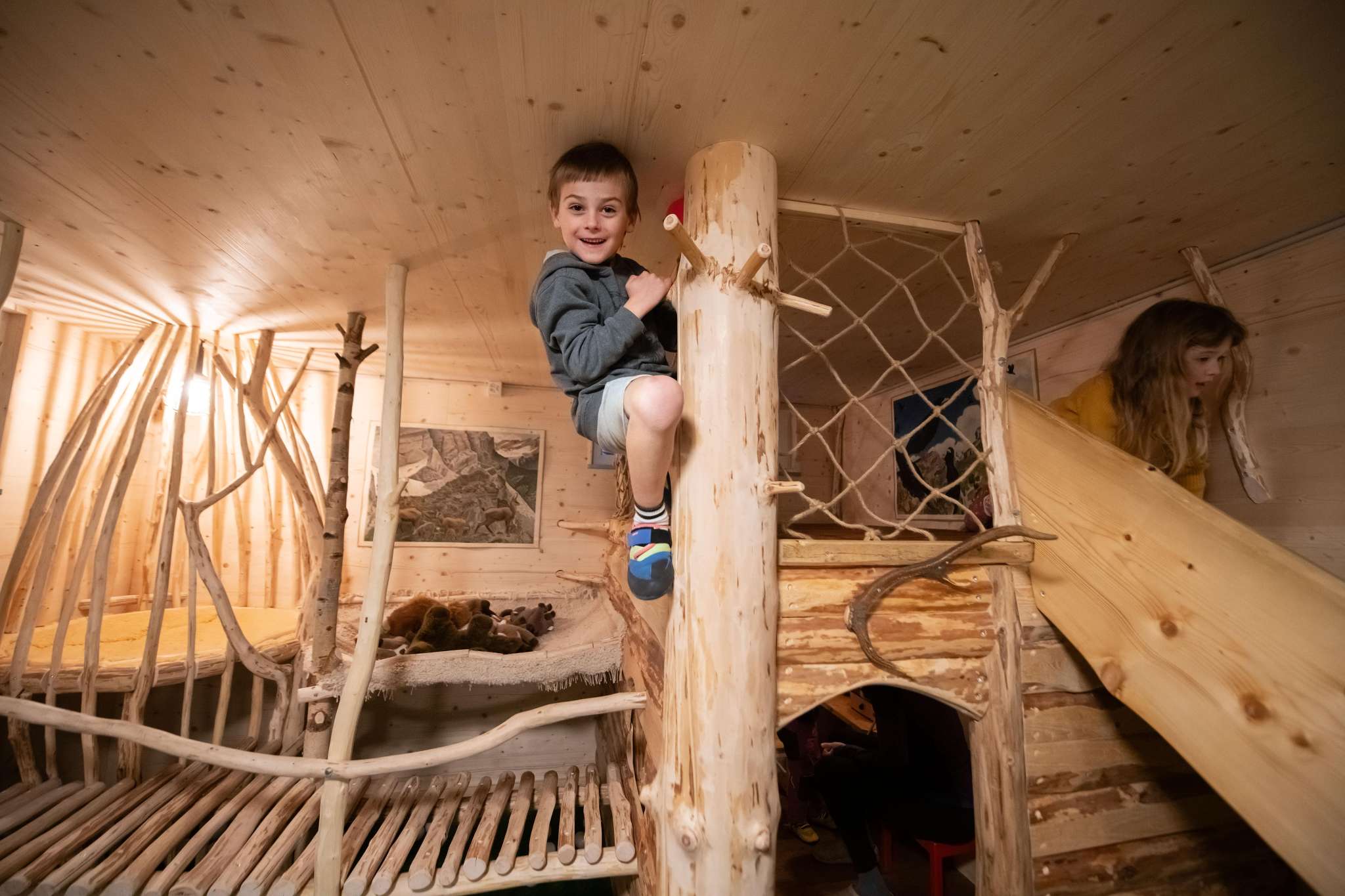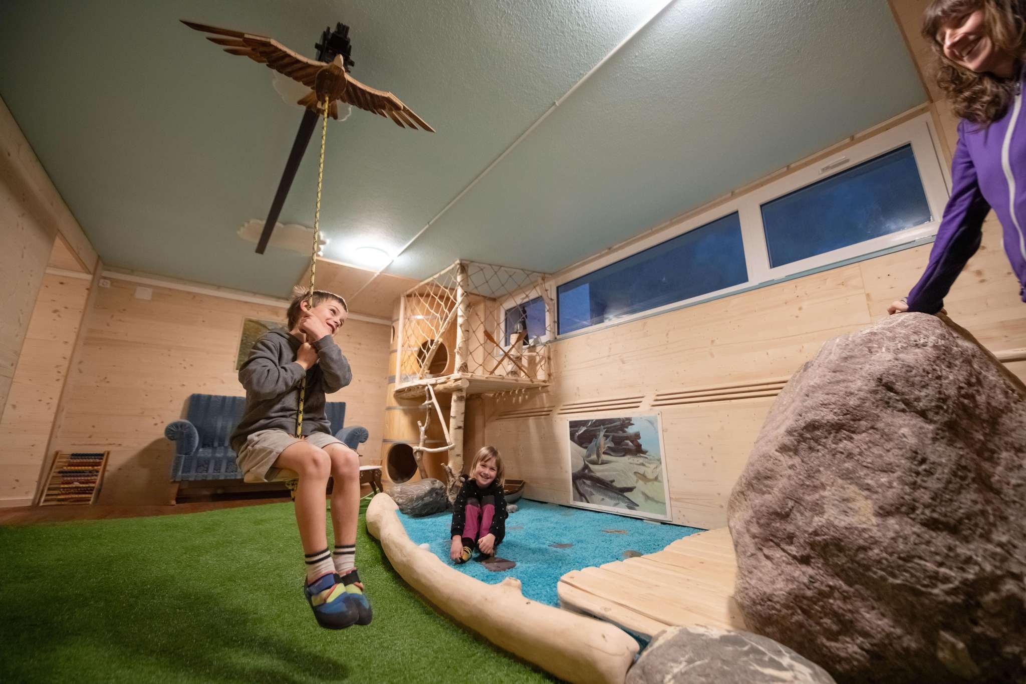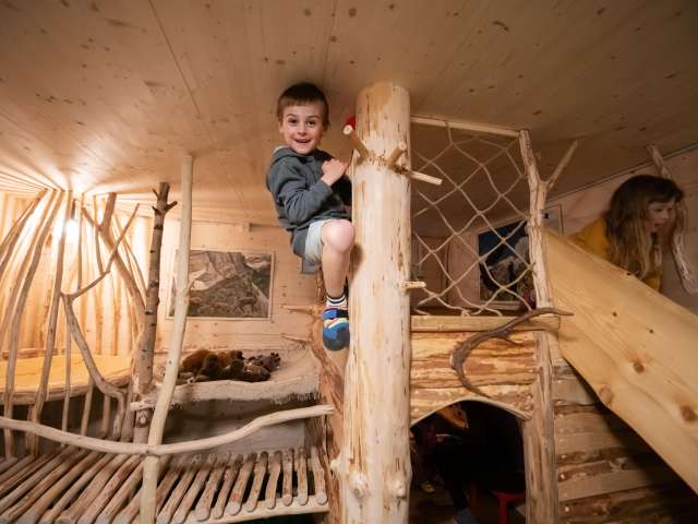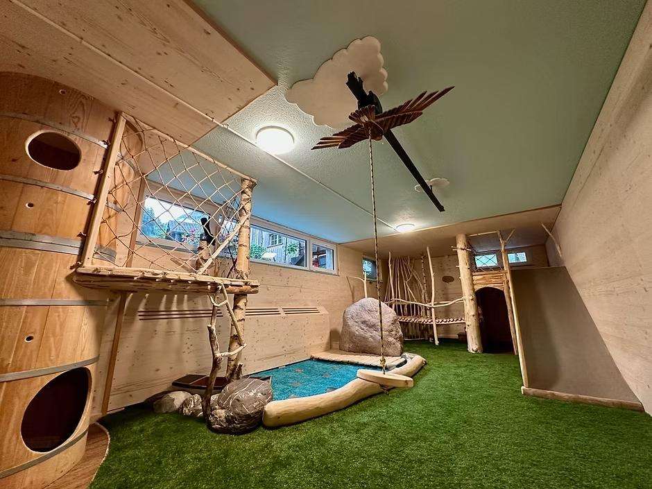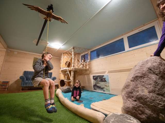Für Kinder und ihre Begleiter eröffnet sich eine abwechslungsreiche Kletter-, Balancier-, Bewegungs- und Spielewelt hinter den Türen des Spielraums.