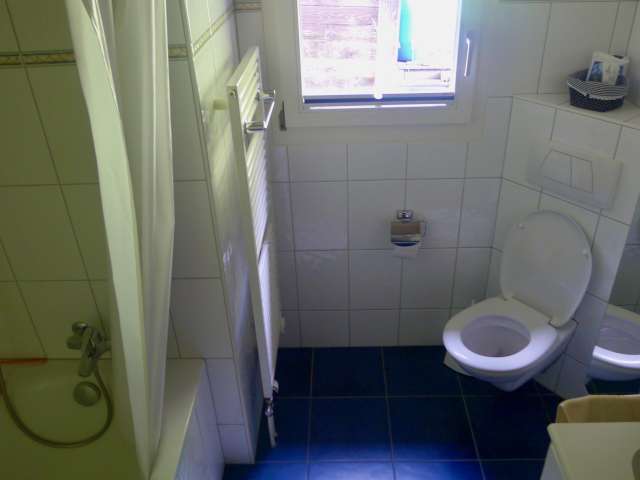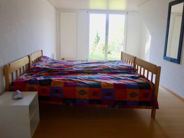 Die Wohnung eignet sich insbesondere für mehrere Familien, Generationen oder Freunde, die gemeinsam Ferien machen wollen. Die beiden grossen Zimmer im unteren Stock bieten dank eigenem En suite-Bad und Zugang zum Garten viel Privatsphäre. Oben befindet sich das grosse, helle Wohnzimmer mit Cheminée sowie zwei weitere Schlafzimmer und ein Bad.