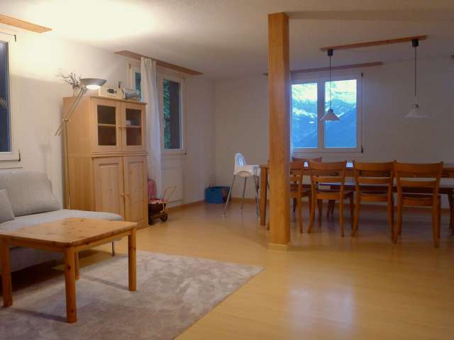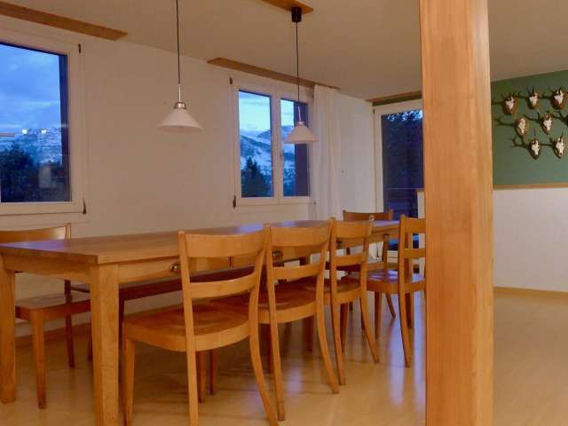 Die 5,5-Zimmer-Wohnung mit wunderschöner Aussicht liegt wenige Gehminuten oberhalb des Dorfes.