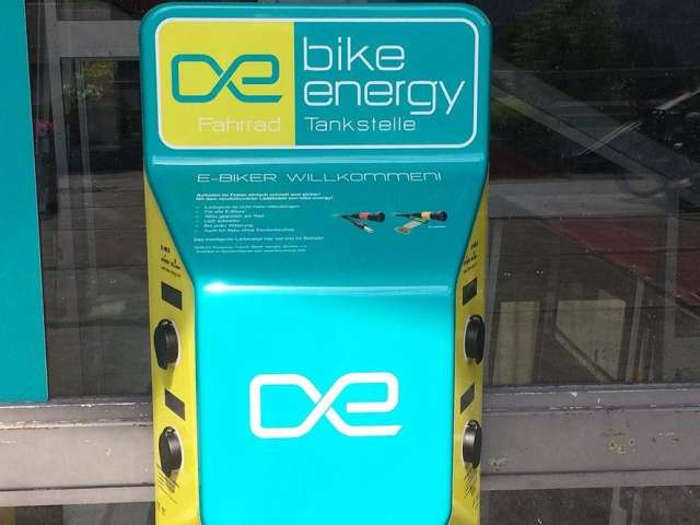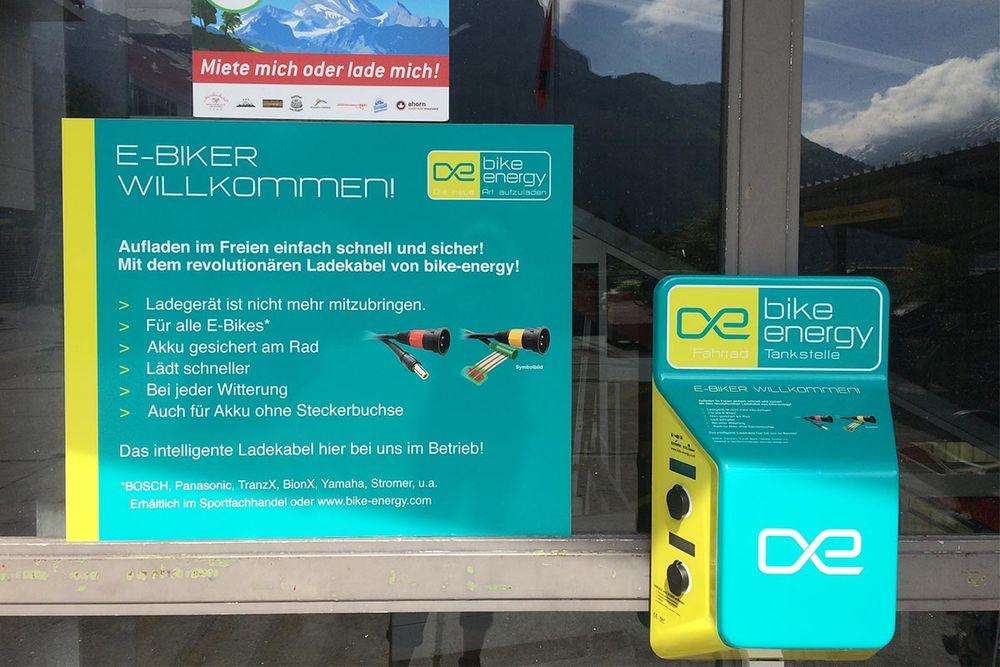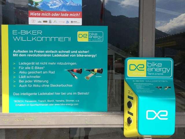 E-Bike Ladestation von bikeEnergy bei der Talstation der Standseilbahn.