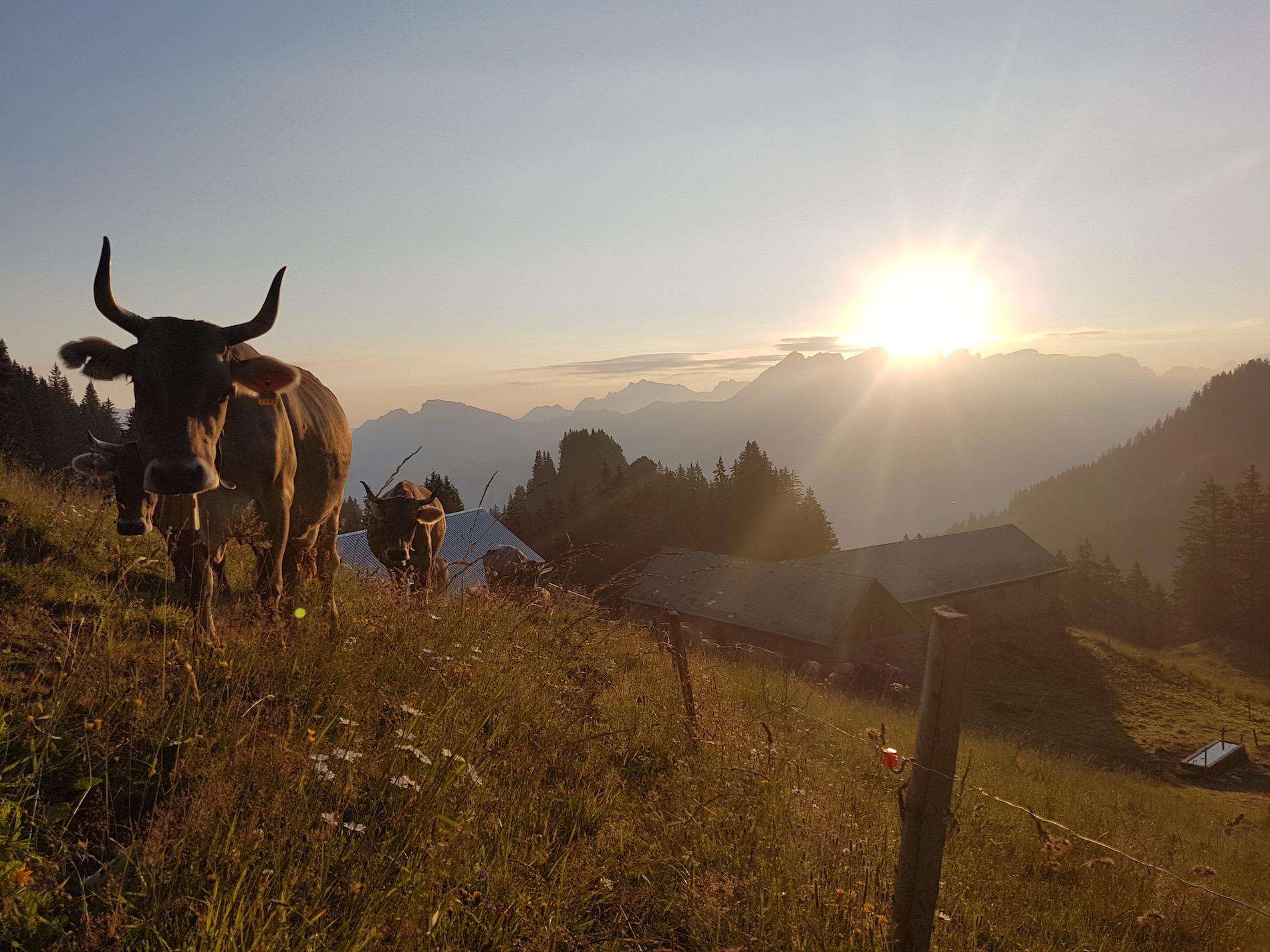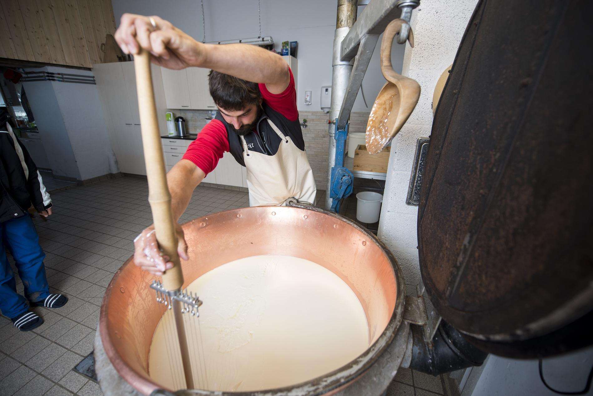 Die Nüenalp ob Mollis besticht nicht nur mit der Erlebniskäserei von Mittler- und Ober Nüen – auch Säumen und Kuhmelken ist bei Rahel und Christian Beglinger-Urner möglich. Aus der frischen Milch der Kühe wird täglich Glarner Alpkäse hergestellt – und dabei darf auch zugeschaut werden. Während der Alpsaison können Gruppen nach Voranmeldung am Erlebniskäsen teilnehmen. Ihr entscheidet, welches Produkt hergestellt wird: Alpkäse-Mutschli, Alp-Raclettekäse oder das Original, der traditionsreiche Glarner Alpkäse.