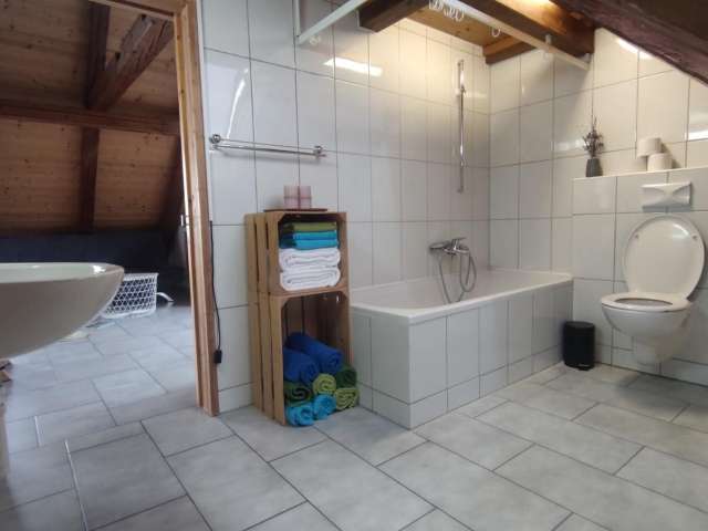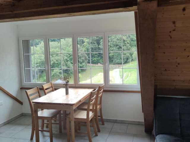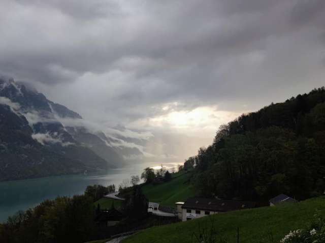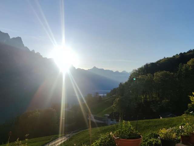 Schöne helle Wohnung im Dachgeschoss, mit traumhafter Aussicht über den Walensee. Am Dorfrand von Obstalden am Kerenzerberg GL. Die Wohnung verfügt über ein Schlafzimmer mit Doppelbett, eine offene Küche mit Ess- und Wohnbereich mit Schlafcouch und ein Bad. In der Wohnung finden standardmässig bis zu 4 Personen Platz. Bei grösserer Belegung kann mit dem Vermieter Kontakt aufgenommen werden. Ein Aussensitzplatz kann ebenfalls genutzt werden. Parkplatz vorhanden. Obstalden ist idealer Ausgangspunkt für Wanderungen, Biketouren und Skitouren. Perfekt ist die ruhige Lage und die Infrastruktur im Dorf mit Dorfladen und Restaurants. In Filzbach (30 Minuten Fussmarsch oder weniger als 5 Auto- oder Busminuten entfernt,) bieten die Kerenzerbergbahnen (kerenzerbergbahn.com) im Winter wie im Sommer diverse Aktivitäten an. Die Gondelbahn in Unterterzen, die in das grosse Ski- und Wandergebiet der Flumserberge führt, ist in 10 Autominuten erreichbar.