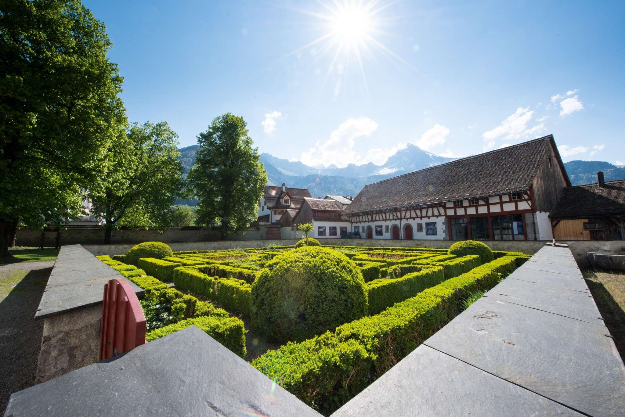 Während Sie durch die Prunkräume und viele andere original erhaltene Gebäudeteile aus dem 17. Jahrhundert wandeln, erfahren Sie mehr zum Erbauer des Palasts, Kaspar Freuler, und seiner Zeit. Der Bereich Kulturgeschichte blickt bis zu den ersten Siedlungen in unserer Region zurück. Der Ausstellungsteil zum Textildruck vertieft den lange Zeit wichtigsten Industriezweig im Glarnerland. Die Abteilung Skisport erzählt von der glarnerischen Pionierrolle in diesem Bereich.