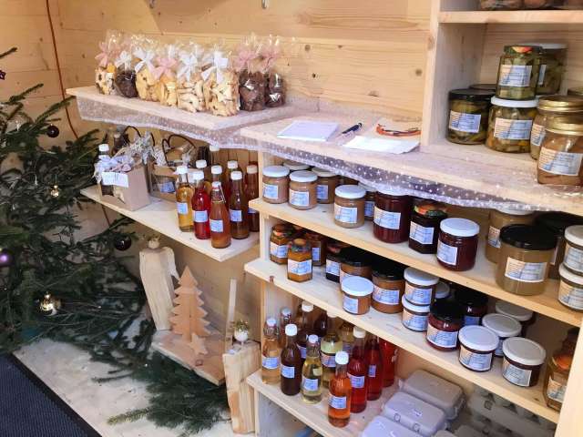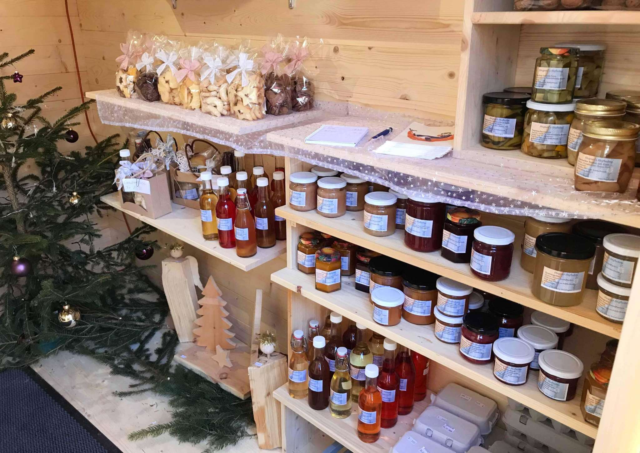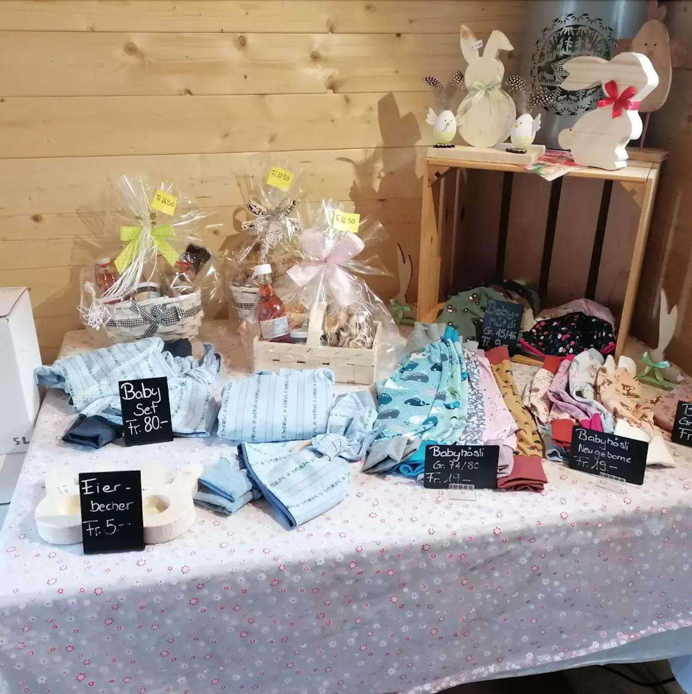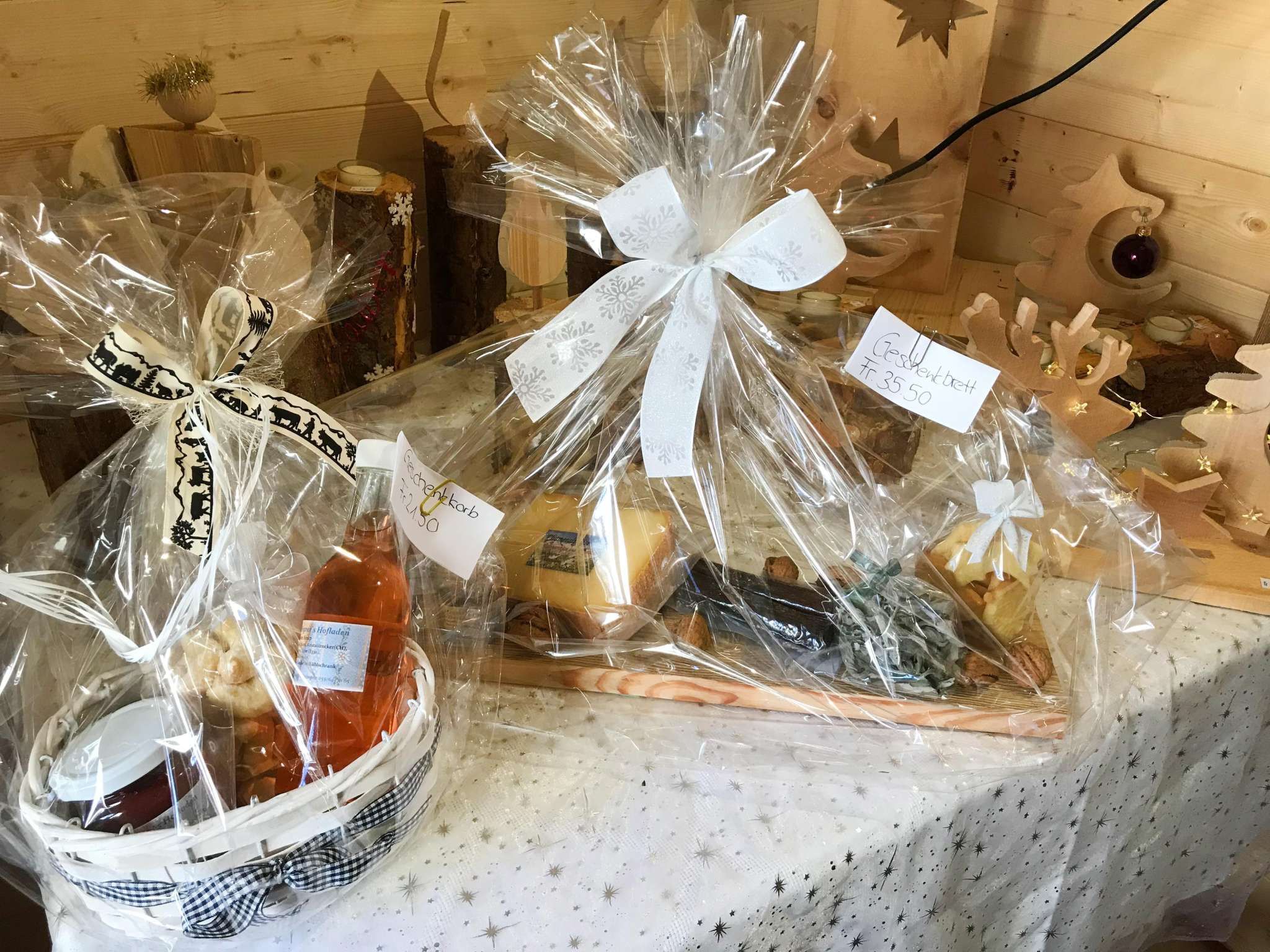 Alpkäse, div. Geschenk-Ideen mit regionalen Produkten, Selbstgenähtes & zur Weihnachtszeit auch selbstgemachte Guetzli.