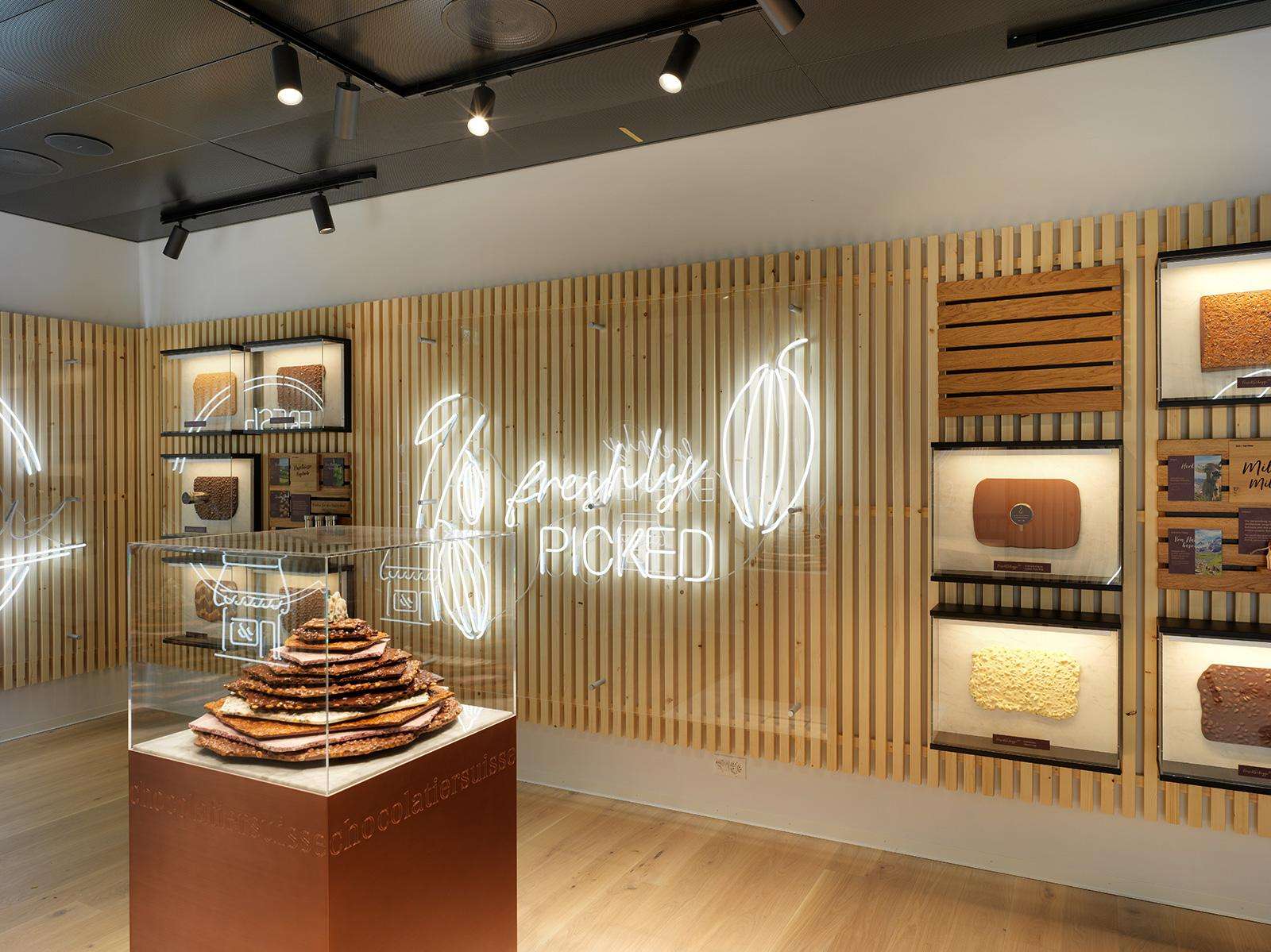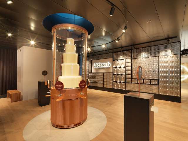Neben dem Rundgang gibt es im House of Läderach einen Factory Store, der eine besondere Überraschung parat hält: die längste FrischSchoggi-Theke der Welt mit über 20 köstlichen Sorten. Probieren ist hier ausdrücklich erwünscht. Die grossen Platten werden täglich in der Schweiz produziert und innerhalb weniger Tage weltweit in die Chocolaterien geliefert und dort an der Theke individuell auf Kundenwunsch in Stücke gebrochen. Darüber hinaus können Schokoladenliebhaber das Läderach Sortiment vor Ort in seiner grossen Vielfalt samt Pralinés, Truffes, luftigen Mini Mousses und weiteren süssen Verführungen entdecken und zu attraktiven Preisen erwerben. Ein besonderes Highlight ist zudem das Walk-in Atelier innerhalb des Factory Stores, welches Gästen ermöglicht, eine individuelle Schokoladen-Tafel samt persönlicher Dekoration zu gestalten.