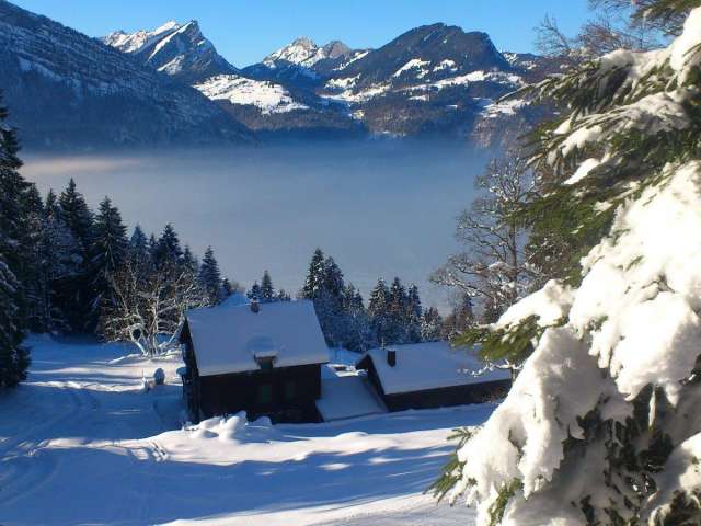 Das traditionelle Gruppen-Ferienhaus für 40 Personen an schönster Aussichts- und Alleinlage, 700 m.ü.M. über dem Talboden von Mollis gelegen.