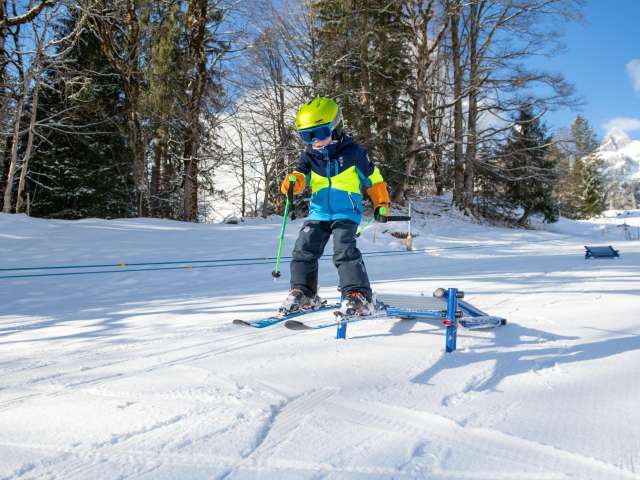 Skifahren/Snowboarden: Unterhalb des Skischulgeländes gibt es zwei Übungslifte mit farbigen Toren und kleinen Schanzen. Das Gelände eignet sich ideal für die ersten Erfahrungen auf Ski oder Snowboard. Personen ab 6 Jahren brauchen für diese Lifte ein gültiges Ticket. Tickets (inkl. Gondelbahn Niederschlacht) können bei der Skischule gekauft werden. Die Tickets der Sportbahnen sind auch im Kinderland gültig.