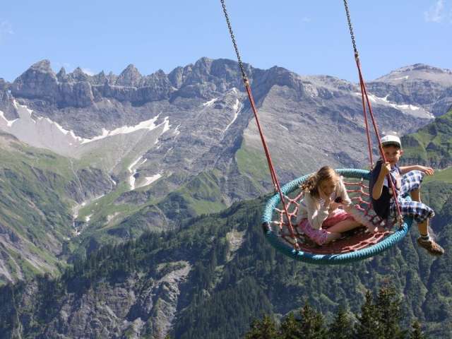 Auf dem grossen Kinderspielplatz vor dem Bergrestaurant Ämpächli warten viele spannende Angebote auf unsere Gäste.