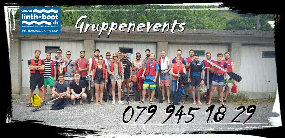 Nur drei Minuten vom Bahnhof Ziegelbrücke entfernt befindet sich der Ausflugshafen von linth-boot.ch. Ab dort starten jeden Sommer Familien, Freunde, Vereine und Firmen sieben Tage die Woche in ihr Schlauchbooterlebnis und tauschen den Alltag gegen drei Stunden Erholung und Freude. Vorbei geht die Reise an Bergkulissen und an renaturierten Seitenarmen der Linth. Während der ersten 15 km dienen die Paddel lediglich der Kurskorrektur, sonst sorgt der Linthkanal für das Vorwärtskommen. Nach einer Stunde gibt es in Benken-Giessen die Möglichkeit, einen Zwischenstopp einzulegen oder die Fahrt zu beenden. Beim Schloss Grynau gibt es eine zweite Möglichkeit, die Fahrt zu beenden. Beim dritten Abschnitt startet − immer den Bojen folgend − für ca. 35 Minuten das Paddelerlebnis, bis zum Ziel in Schmerikon. Dort legen die Boote an und die Fluss-Kapitäne treten gemütlich die Heimreise an oder lassen den Tag am Hafen, beim Baden und in den umliegenden Restaurants ausklingen. Bitte vor einer Linth-Bootstour unbedingt den Flyer mit den Informationen und Anweisungen der Linthverwaltung lesen: www.linthwerk.ch/gummiboote