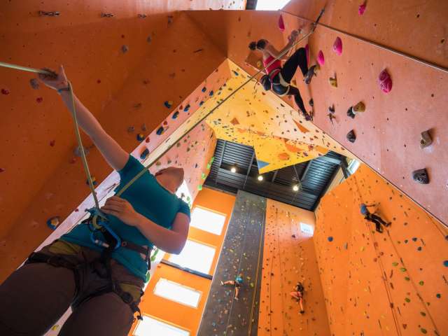 Das Sportangebot umfasst zwei Kletterhallen, eine Boulderhalle, drei Fussballplätze, vier vielseitig einsetzbare Mehrzweckhallen sowie Group Fitness, das Hallenbad mit Warmwasseraussenbecken und die Wellnessanlage.