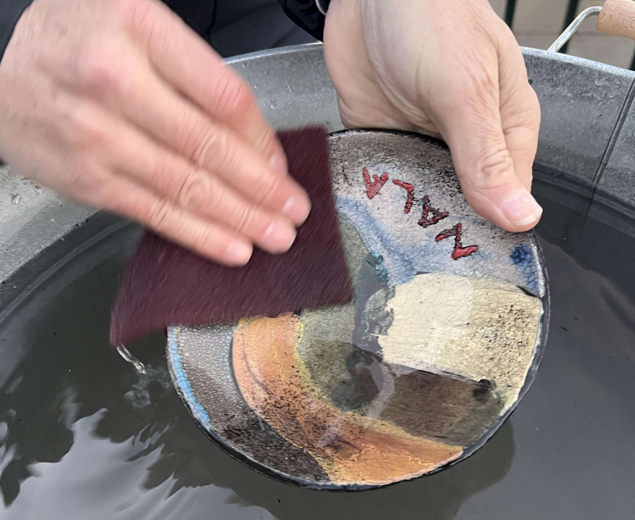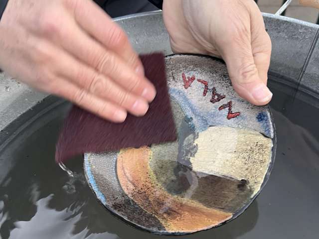 unvorhersehbaren, faszinierenden Ergebnisse besticht. Die Schalen und Objekte werden zunächst durch die Gäste mit speziellen Rakufarben nach Lust und Laune gestaltet, anschliessend im Brennofen auf ca. 950 Grad erhitzt bis die Farben schön glänzen. In dieser Zeit können die Gäste sich an einem kleine Apero stärken und dabei gleichzeitig die Öfen mit Holz bestücken. Rotglühend werden die Schalen aus dem Ofen zuerst in Sägemehl gelegt und abgedeckt, so entstehen die für Raku typischen Risse in der Glasur. Anschliessend waschen die Gäste Ihre Schalen in Wasser was die Farben wieder zum Leuchten bringt. Jede Schale ist ein einzigartiges und überraschendes Unikat, bei dem man vorab nicht so genau weiss wie das Ergebnis sein wird.