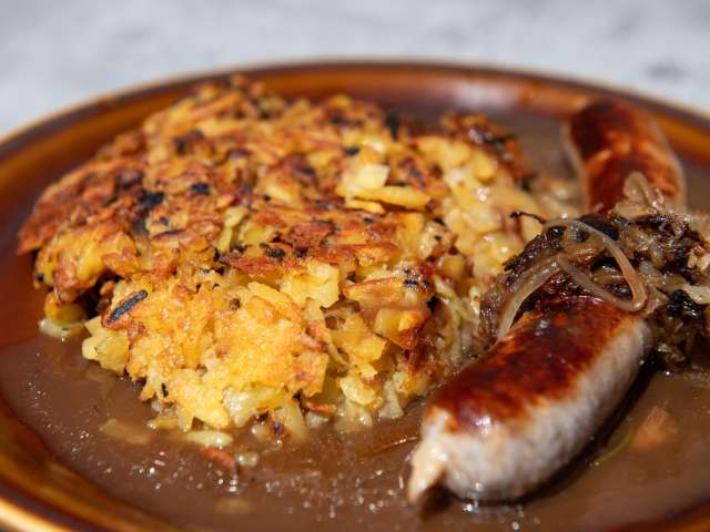 Kinderportion Rösti oder ein paar Wienerli. Kinderteller, Besteck und Kinderhochstuhl sind vorhanden.