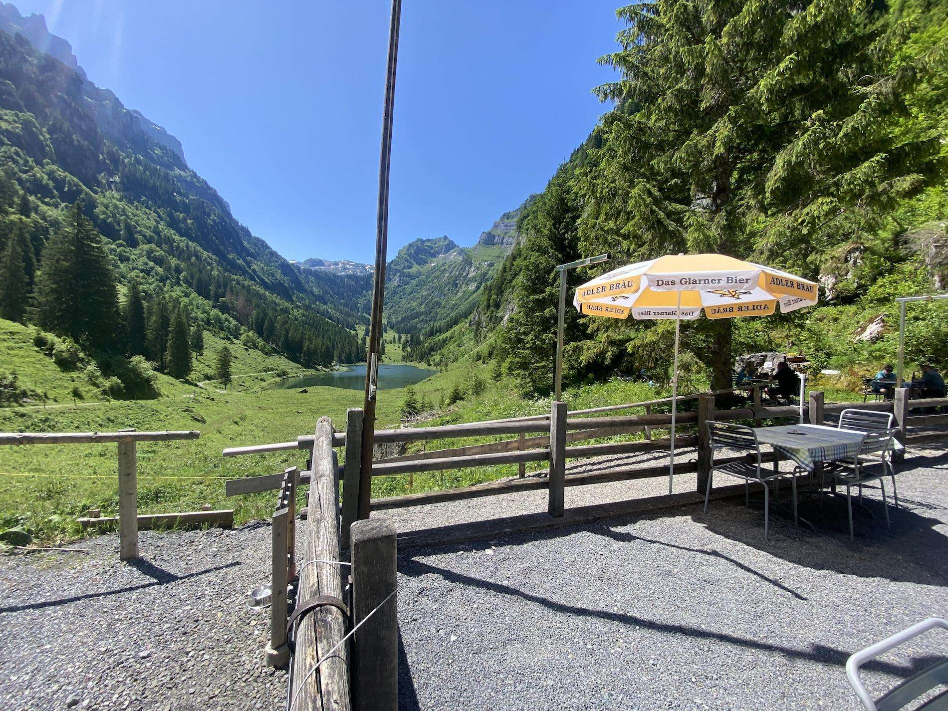 Einkehren und die wunderschöne Aussicht auf den Talalpsee geniessen.