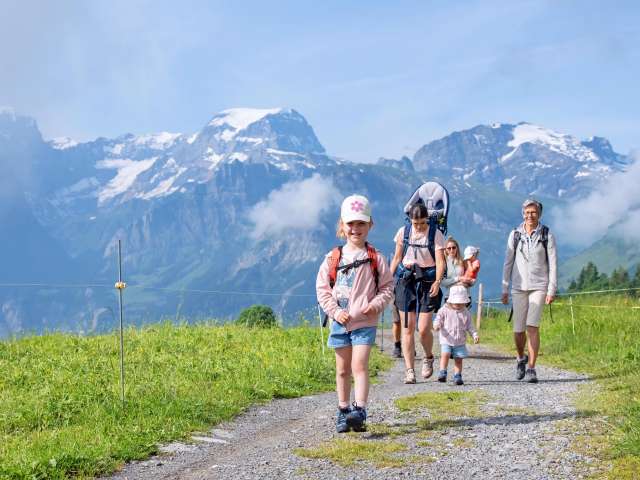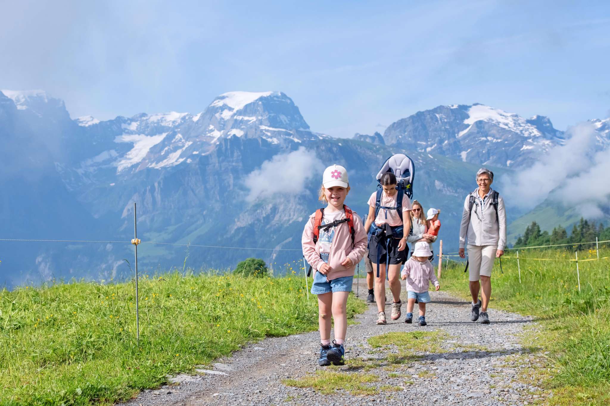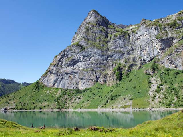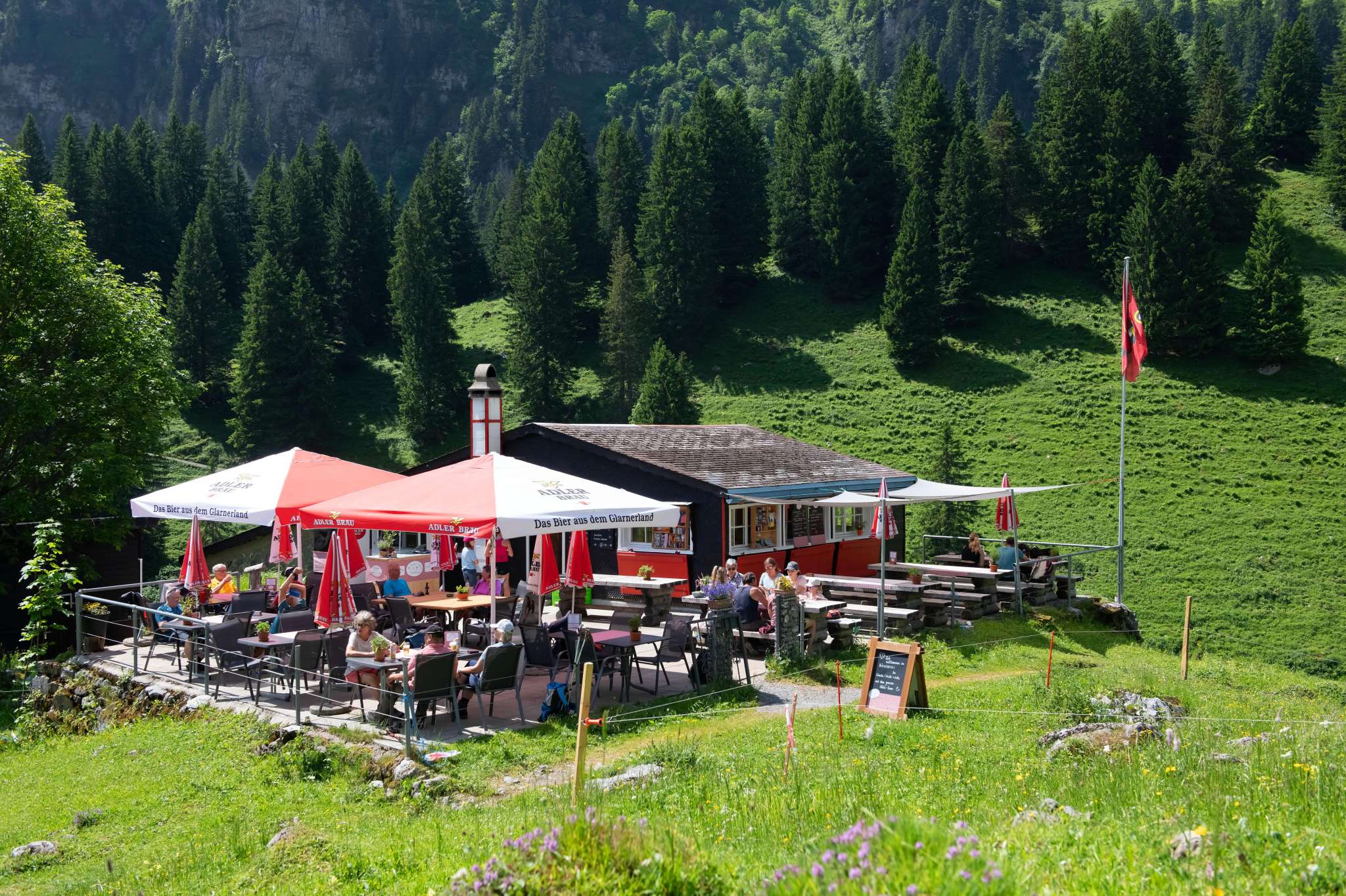 Hier heisst es Inne halten und sich von der atemberaubenden Kulisse verzaubern zu lassen. Laut hallt das Echo vom eindrucksvollen Glärnischmassiv zurück. Von dort geht es vorbei am Mittelstafel der Alp Oberblegi bergab zur Bergstation der Brunnenbergbahn.