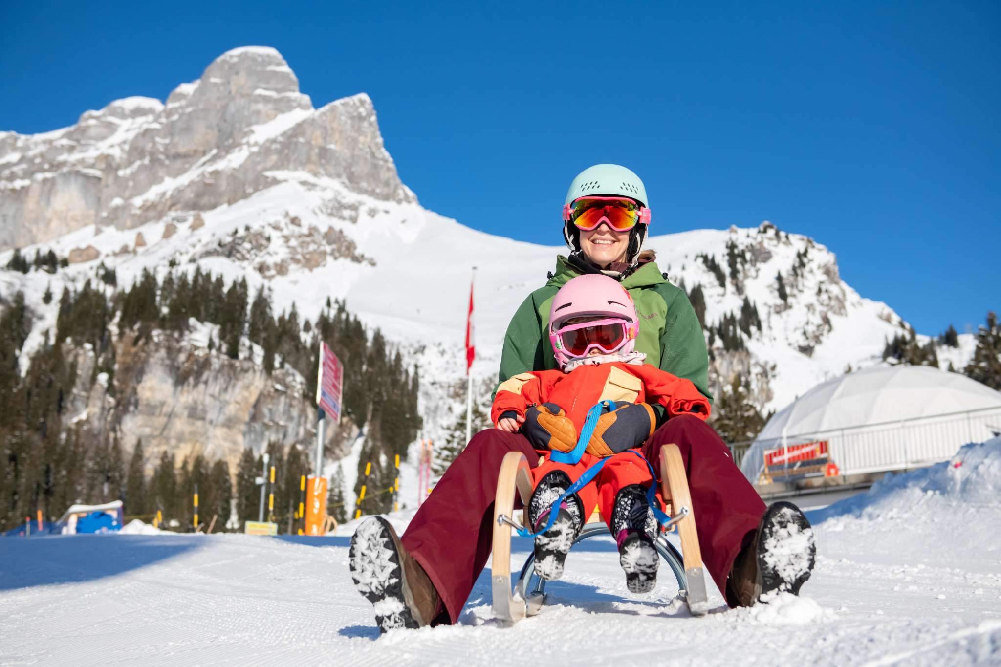 Die Piste ist ausschliesslich für Schlittler reserviert und verspricht viel Fun und Action, egal ob gemütlich mit der Familie, rasant zu zweit oder beim Gruppenausflug.