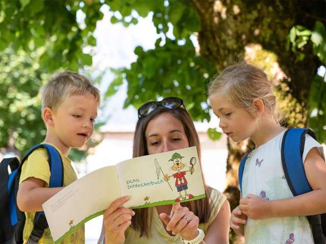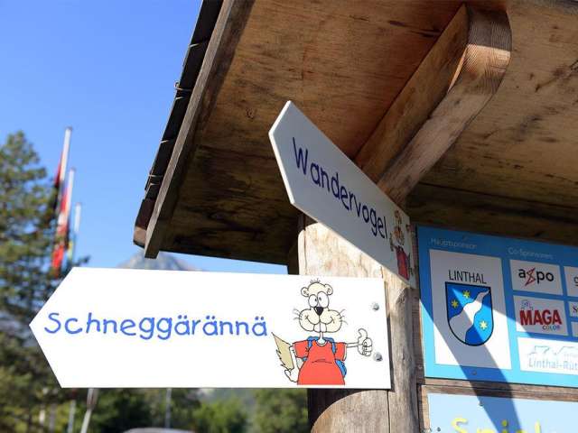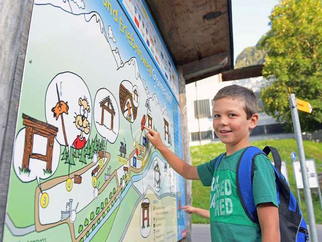Ausgerüstet mit dem Eichi-Rucksack und einem Entdeckerset geht es von der Braunwaldbahn Talstation balancierend der Linth entlang Richtung Süden los. Dabei begegnet ihr Eichi immer wieder.
