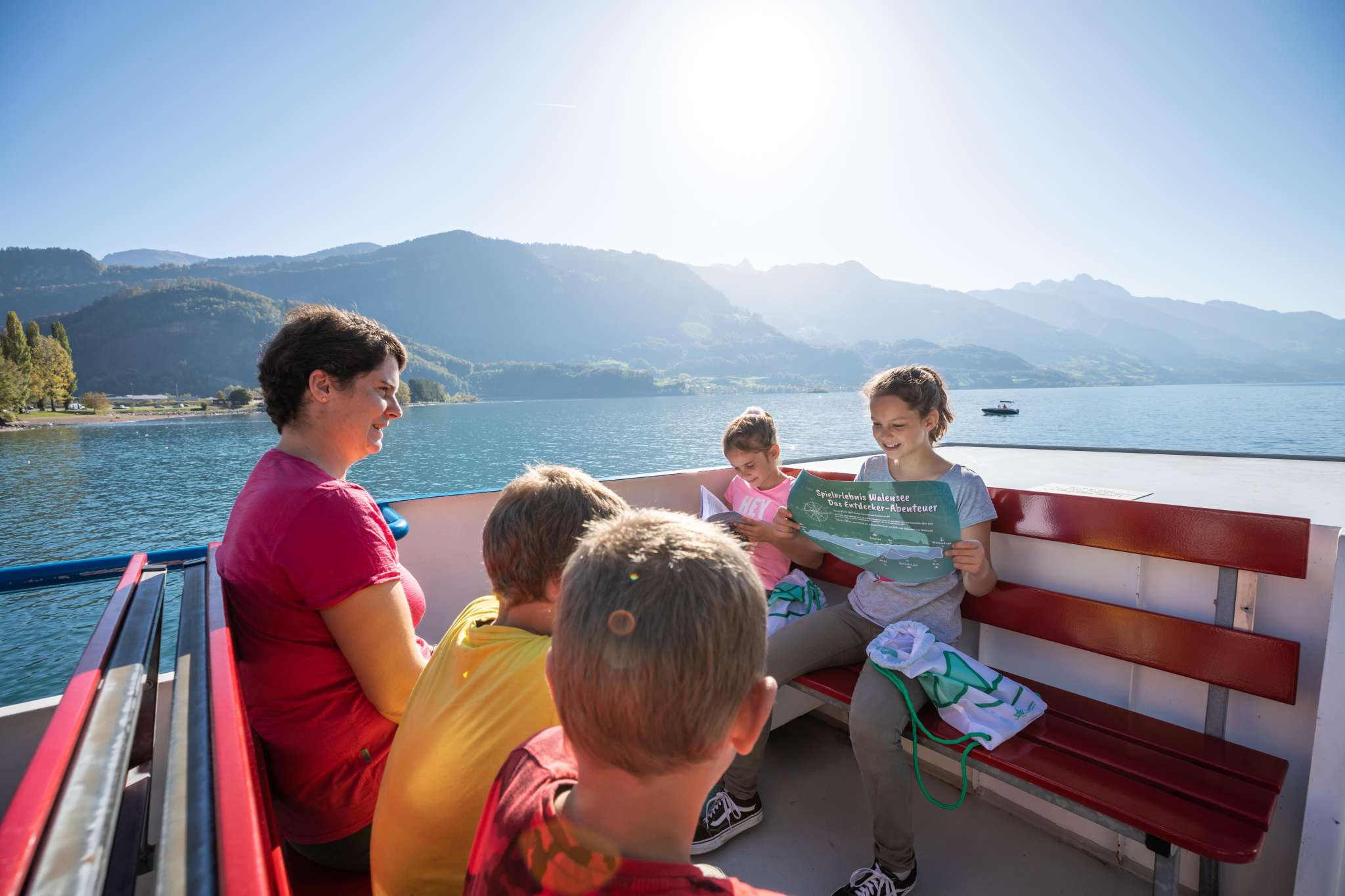 Auf dem Schiff und an den sechs Spielplätzen und Themenwegen entlang des Walensees lösen Kinder das Geheimnis mit dem Entdecker-Set und erleben eine abenteuerliche Rundreise am Walensee!