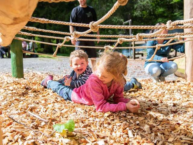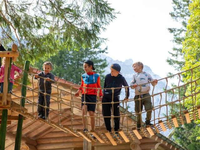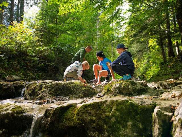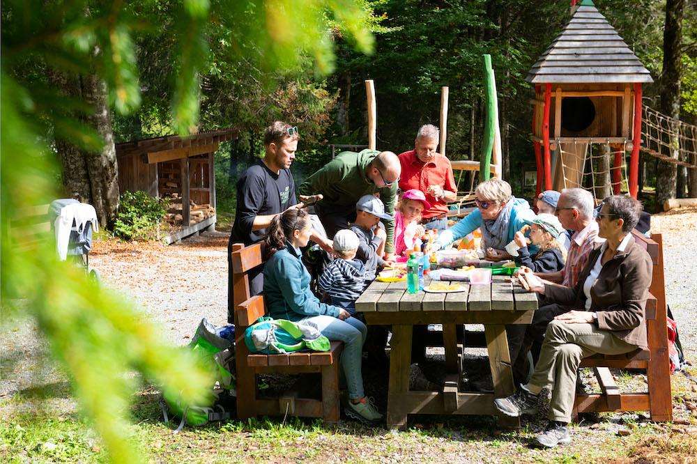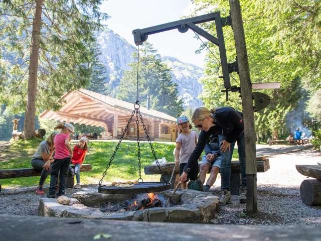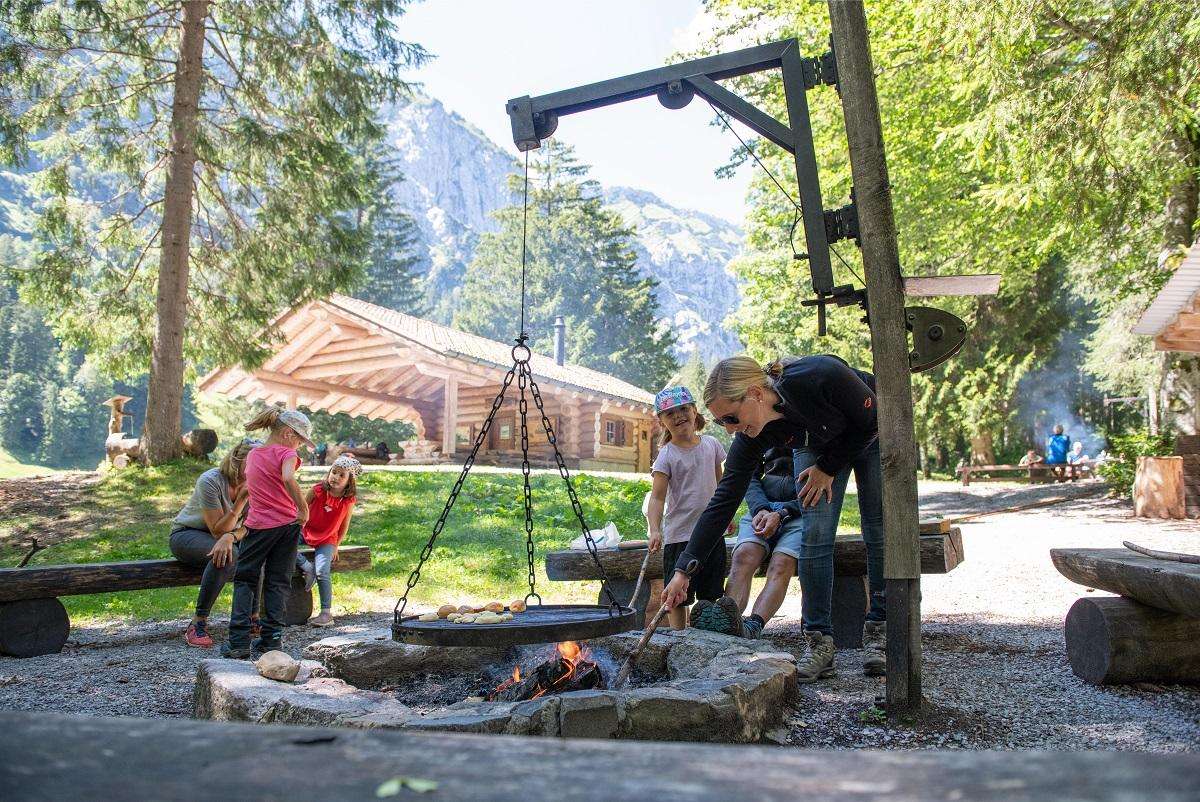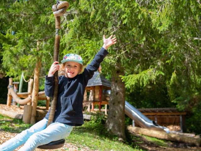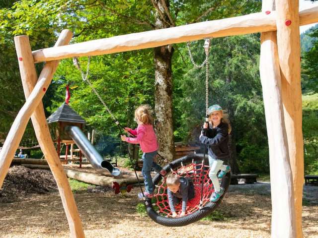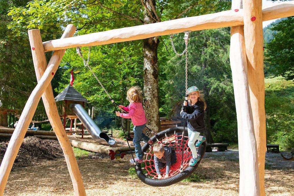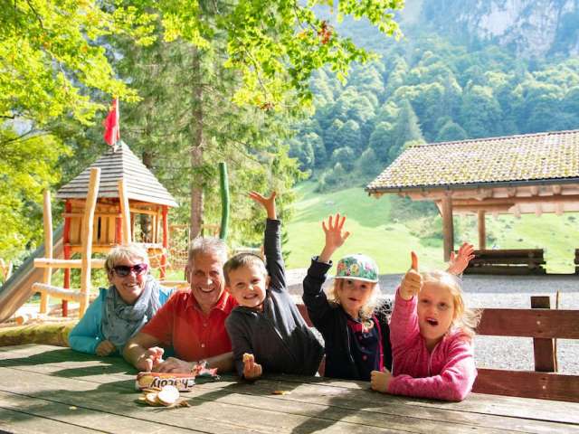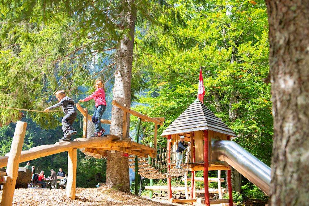 Ein Teil der Wanderung zum Spielplatz befindet sich auf dem abwechslungsreichen und landschaftlich reizvollen Holzskulpturen-Rundweg, welcher Abwechslung, Spass und Entdeckungsfreude bietet. Ein kinderwagentauglicher Forstweg führt zum Bergrestaurant. Der neu ausgebaute Spielplatz lockt mit Wald, Bach, attraktiven Spielgeräten, Lehr- und Lerntafeln. Die gepflegten Feuerstellen sind mit einem höhenverstellbaren Rost ausgestattet. Ausserdem gibts beim Blockhaus einen grossen gedeckten Sitzplatz mit mehreren Bänken und Tischen. Und auch eine Toilette ist im Sommer für Gäste geöffnet. Der Platz eignet sich u.a. hervorragend für Schul- und Kindergartenreisen.