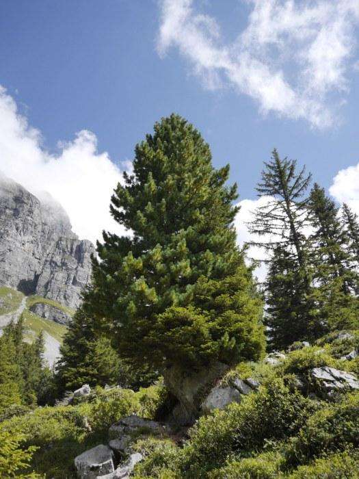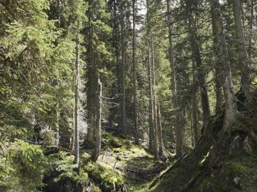 Das Waldreservat Äugstenwald-Holzflue wird von Felsblöcken geprägt. Darauf stockt ein besonderer Wald. Bergföhren schaffen es, direkt auf den Felsblöcken zu wachsen, obwohl es dort sehr trocken ist. Zwischen den Felsbrocken kommen Fichten und die im Kanton Glarus seltene Arve vor. Das Wechselspiel von Bäumen, Sträuchern und felsigen Stellen ergibt ein Mosaik aus verschiedenen Lebensräumen. Zahlreiche Tier- und Pflanzenarten fühlen sich hier wohl, so auch das scheue Birkhuhn. Silberwald Im Waldreservat liess man dem Fichtenborkenkäfer freie Hand. So breitete sich dieser kleine Käfer über mehrere Hektaren aus. Hunderte von abgestorbenen Fichten zeugen davon. In der Sonne leuchten diese Baumstämme silbrig. Dieses Totholz lebt. Pilze und Insekten zersetzten es und Spechte finden hier einen reich gedeckten Tisch. Sie fressen die Insekten, die im Totholz leben.