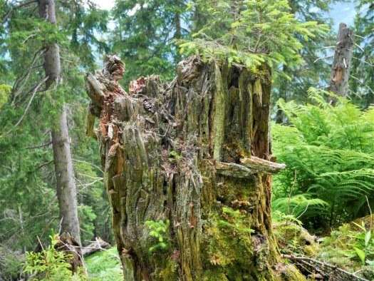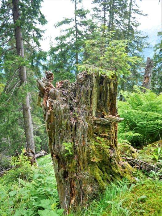 Das Waldreservat liegt im ältesten Wildtierschutzgebiet Europas. Im Kärpf ist die Jagd seit 1548 untersagt. Artenreicher Glarner Wald Abgestorbene Bäume nennt man auch Totholz. Dieses Holz ist tot und doch voller Leben. Unzählige Pilze und Insekten zersetzen es und ernähren sich davon. Flechten und Moose wachsen auf dem vermodernden Holz und Vögel finden hier Nahrung. Im Glarner Wald gibt es viel Totholz. Es ist für die Artenvielfalt wichtig, aber auch für die Waldverjüngung. Ein liegender Baumstamm ist leicht erhöht und dadurch früher schneefrei. Einem Fichtenkeimling hilft das, dem dichten Heidelbeer- und Farnteppich zu entwachsen.