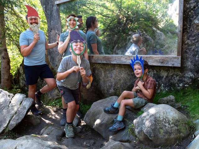 Gumen ⇒ Braunwaldalp Oberstafel ⇒ Zwergenschloss ⇒ Edelsteinspalte ⇒ Zwergenhöhle ⇒ Rindenhüttli ⇒ Grotzenbüel ⇒ Zwergenturm ⇒ Wasserspielplatz ⇒Tiidis Hüsli ⇒ Musiktruhe Braunwald